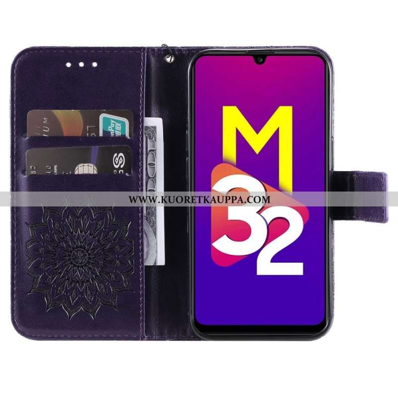 Nahkakotelo Samsung Galaxy M32 Auringon Kukka