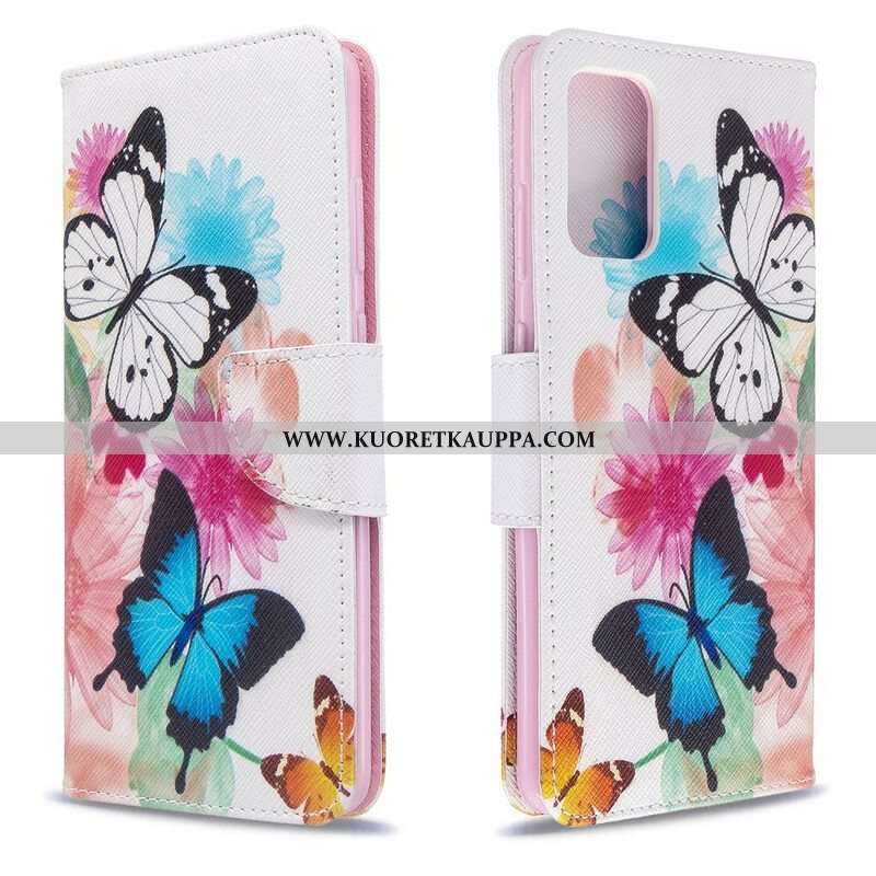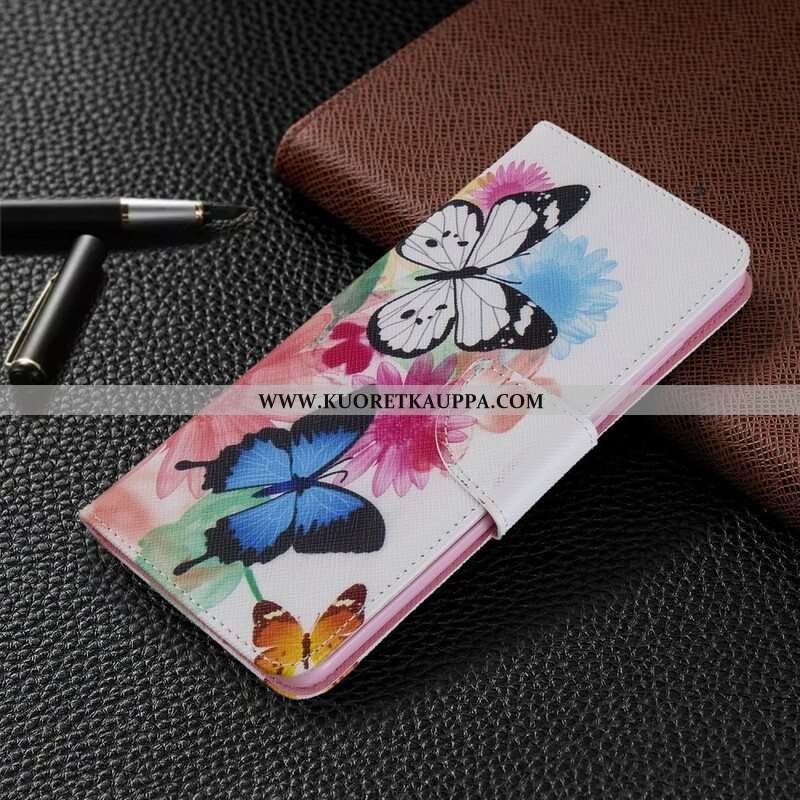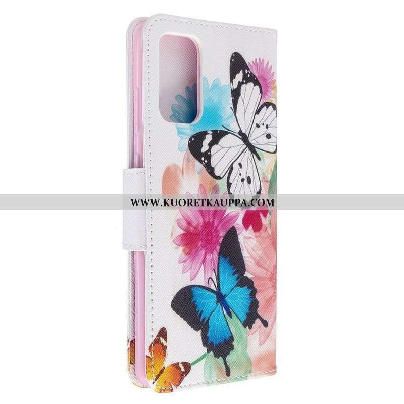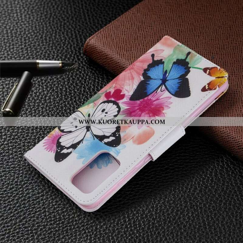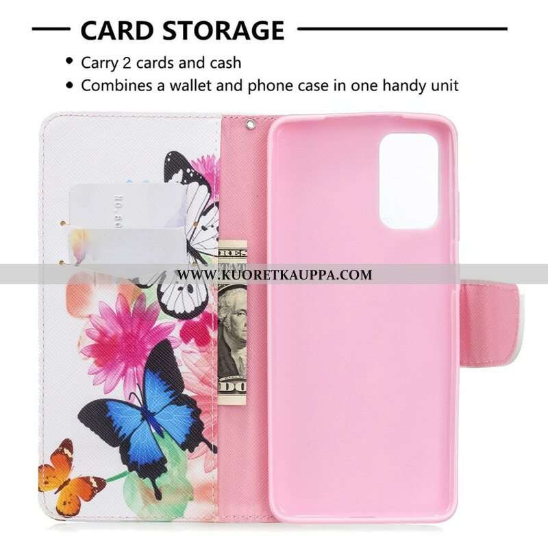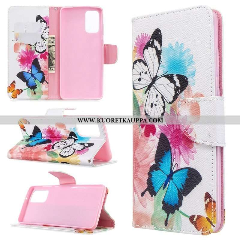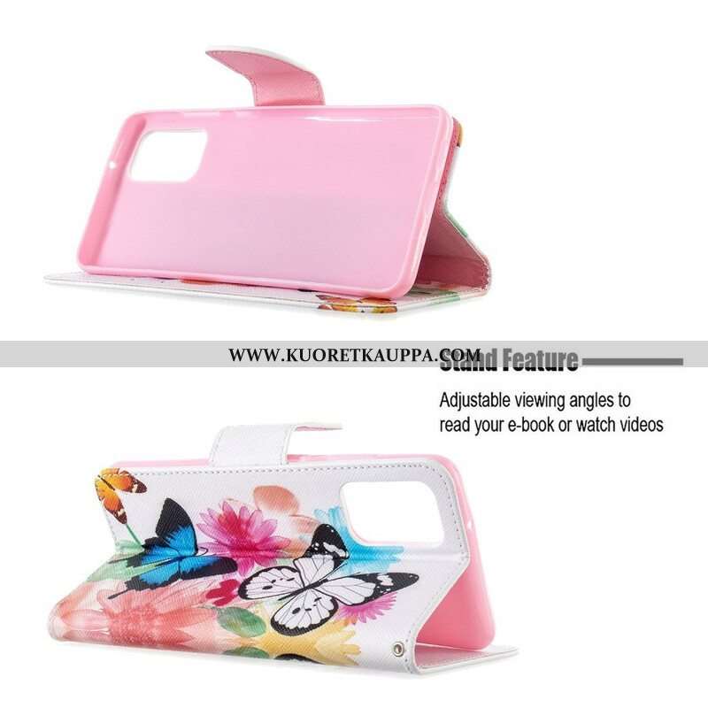 Nahkakotelo Samsung Galaxy S20 Plus / S20 Plus 5G Maalattuja Perhosia Ja Kukkia