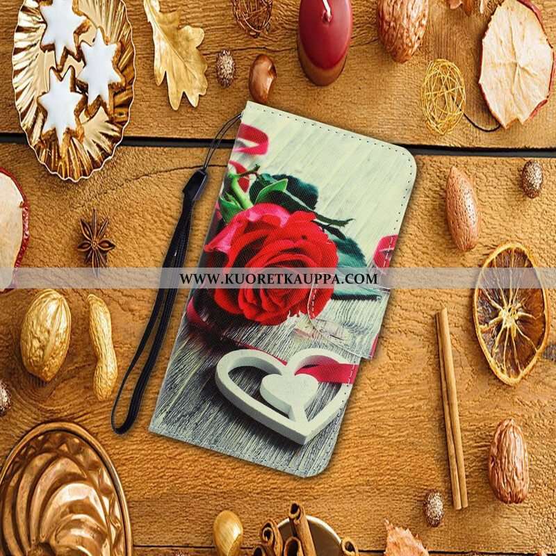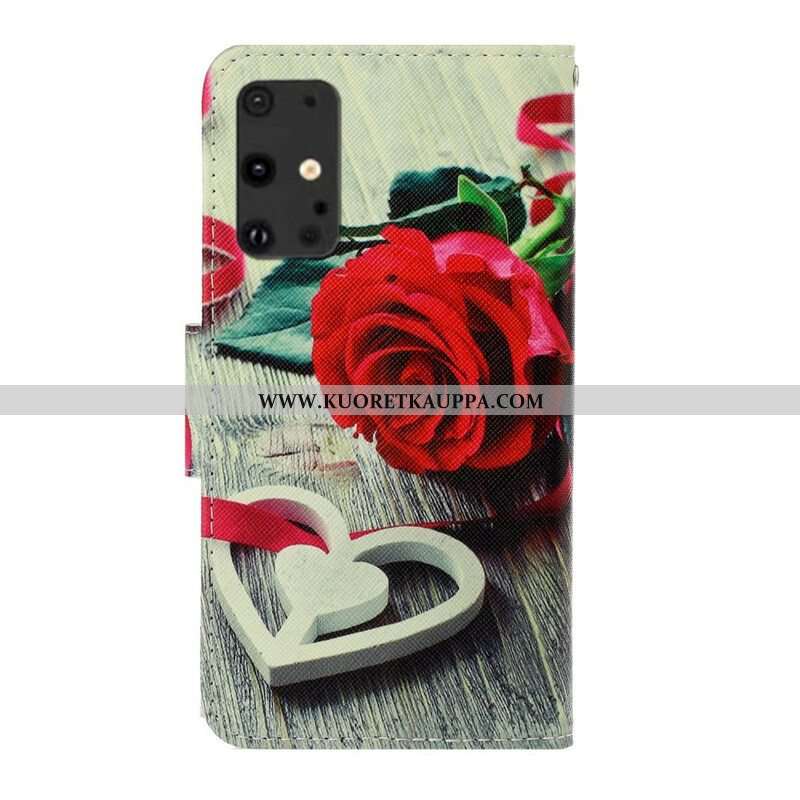 Nahkakotelo Samsung Galaxy S20 Plus / S20 Plus 5G Suojaketju Kuori Romanttinen Ruusu Hihnalla