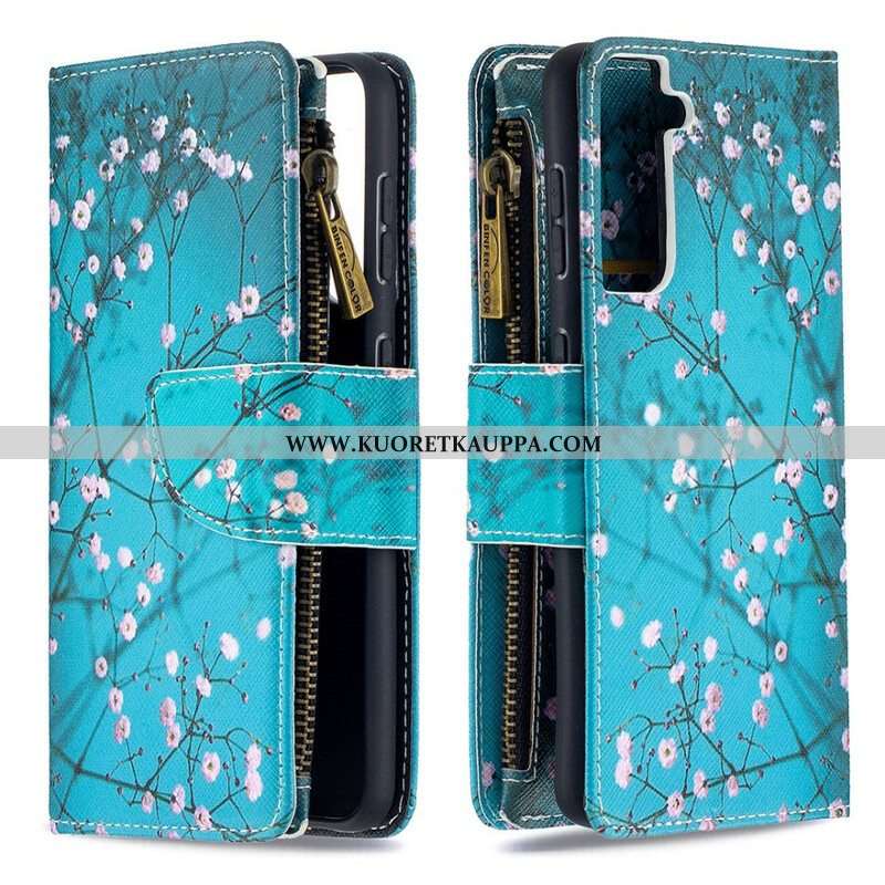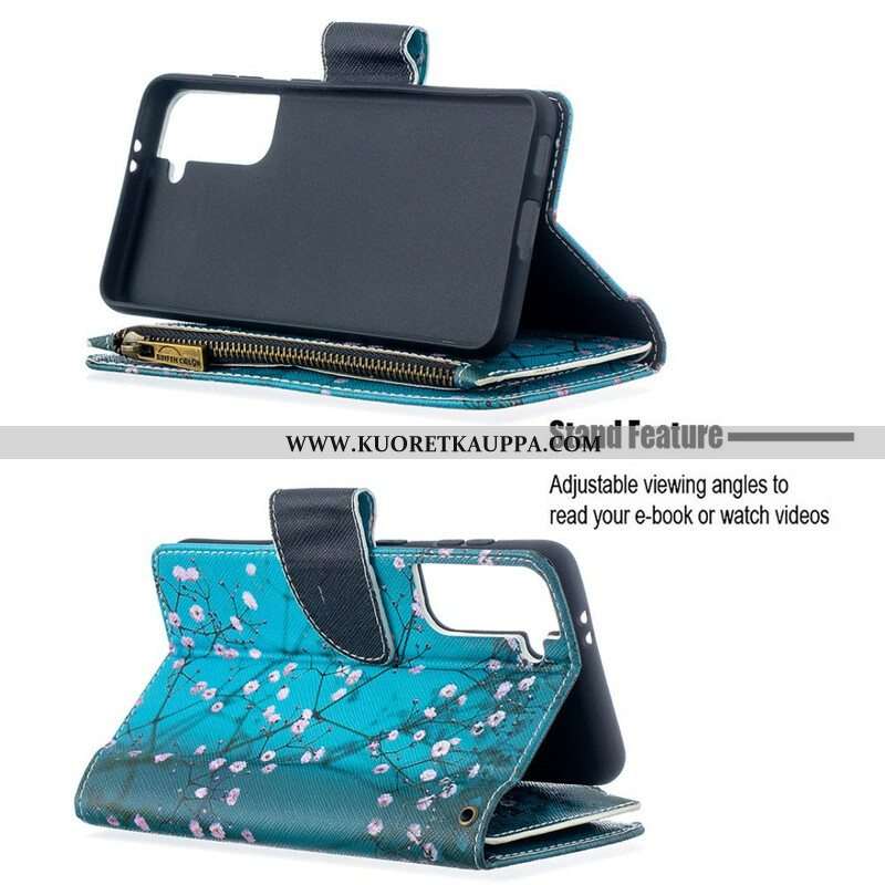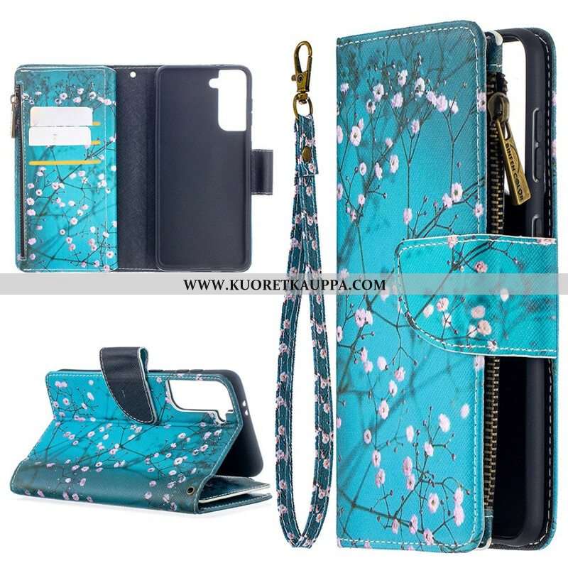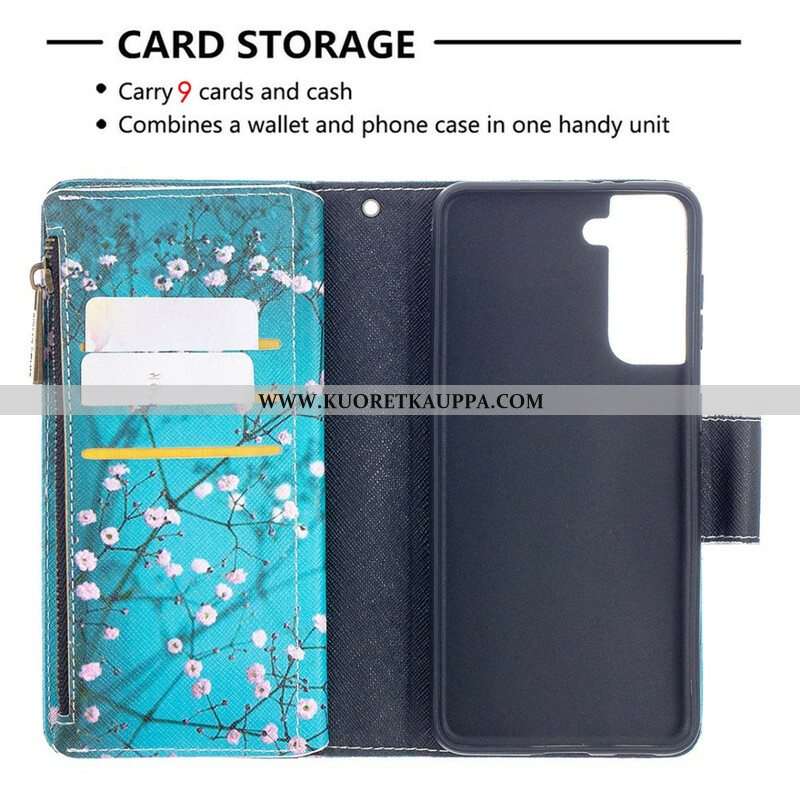 Nahkakotelo Samsung Galaxy S21 5G Vetoketjullinen Puutasku