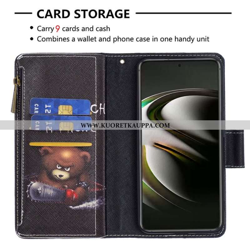 Nahkakotelo Samsung Galaxy S22 5G Vetoketjullinen Taskukarhu