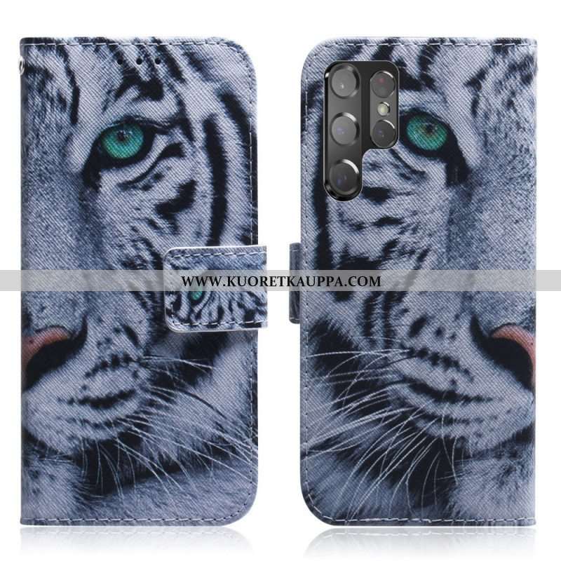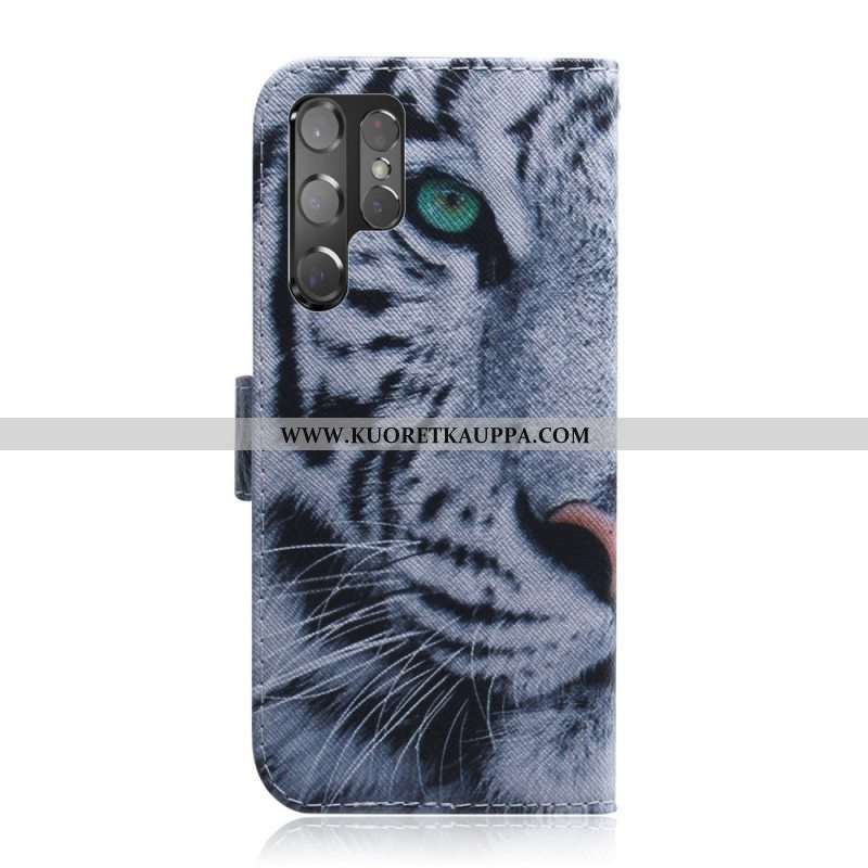 Nahkakotelo Samsung Galaxy S22 Ultra 5G Tiikerin Kasvot