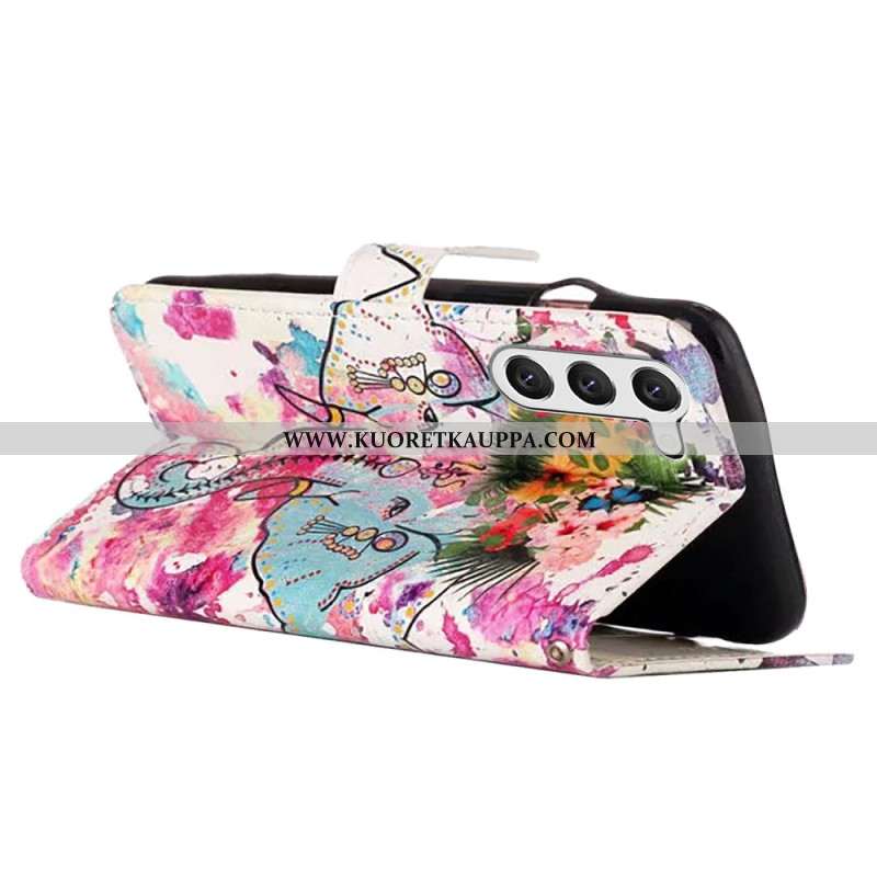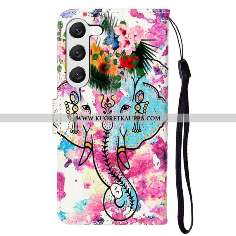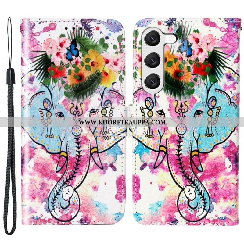 Nahkakotelo Samsung Galaxy S24 5g Kukkanorsu Hihnalla