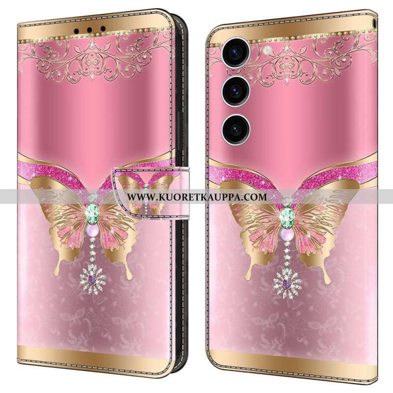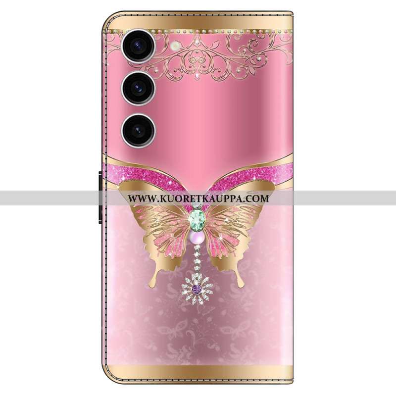 Nahkakotelo Samsung Galaxy S24 5g Vaaleanpunainen Ja Kultainen Perhonen