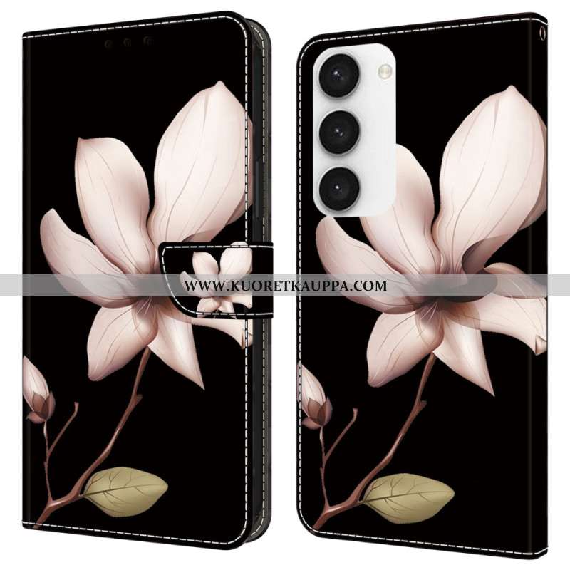 Nahkakotelo Samsung Galaxy S24 5g Vaaleanpunainen Kukka Mustalla Taustalla