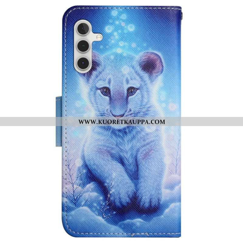 Nahkakotelo Samsung Galaxy S24 Plus 5g Leopardikuvio Hihnalla