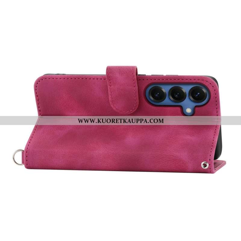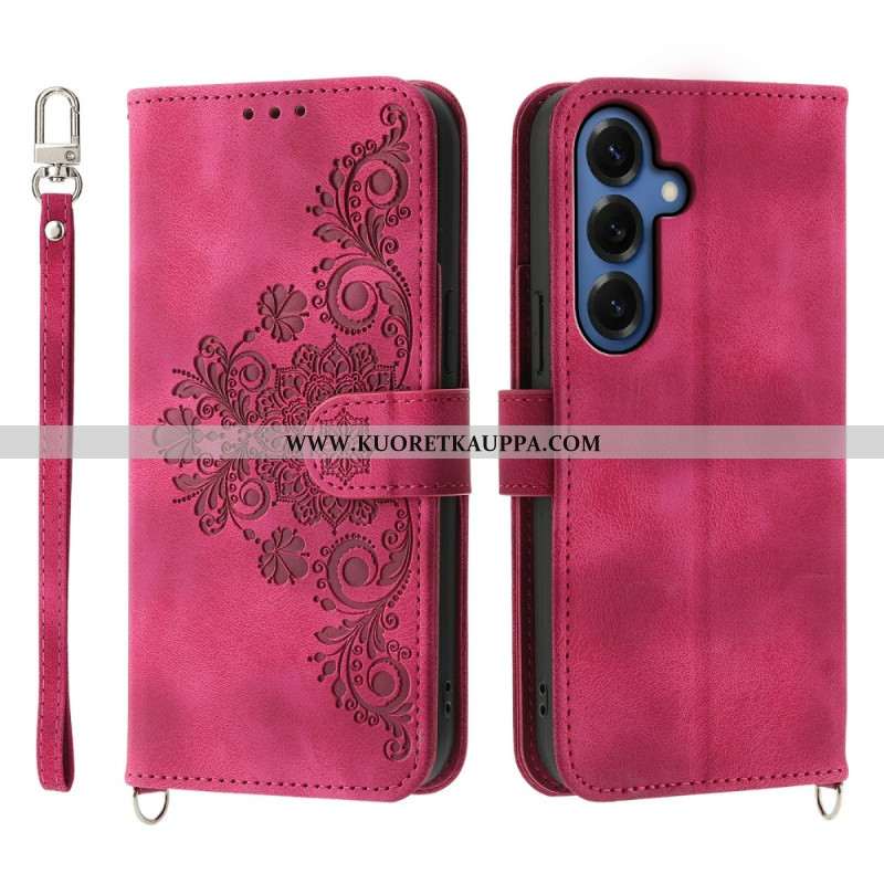 Nahkakotelo Samsung Galaxy S26 Kukallinen Mokkanahkakuvio Hihnoilla