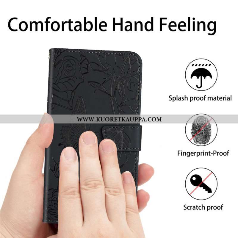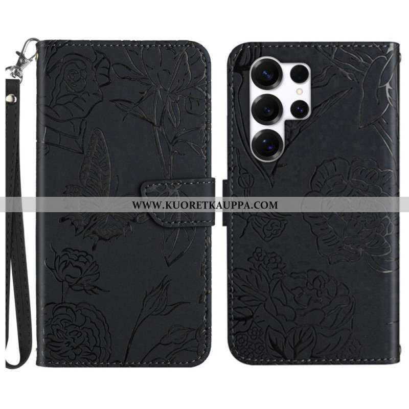 Nahkakotelo Samsung Galaxy S26 Ultra Perhoskuvioinen Ranneke