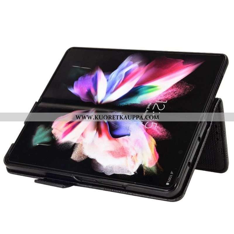 Nahkakotelo Samsung Galaxy Z Fold 4 Kuviollinen Rei'itetty Kolmionauha