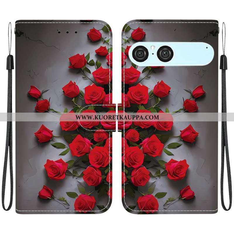 Nahkakotelo Sony Xperia 10 Vii Punaisia Ruusuja
