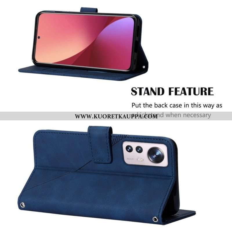 Nahkakotelo Xiaomi 12 Lite Kolmiot Kaulanauhalla