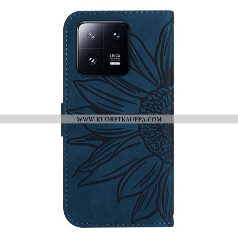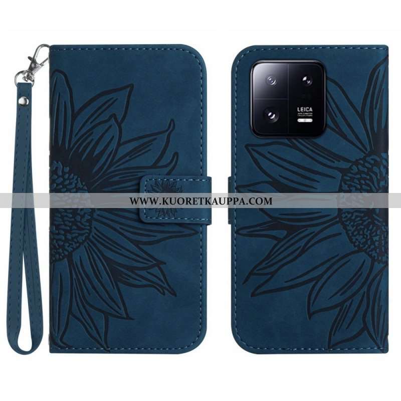 Nahkakotelo Xiaomi 13 Kukka Kaulanauhalla