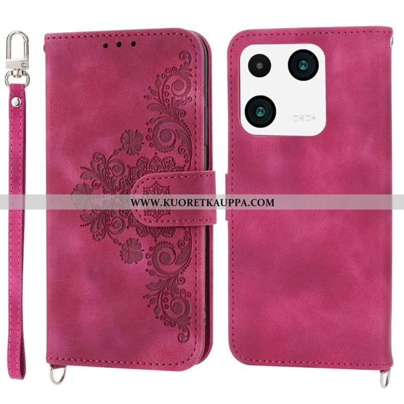Nahkakotelo Xiaomi 13 Pro Pitsikukkia Hihnalla Ja Olkahihnalla