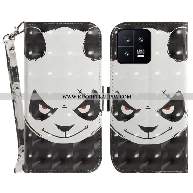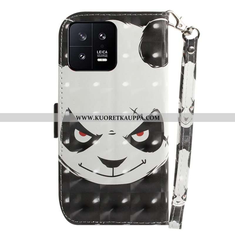 Nahkakotelo Xiaomi 13 Suojaketju Kuori Vihainen Panda Kaulanauhan Kanssa