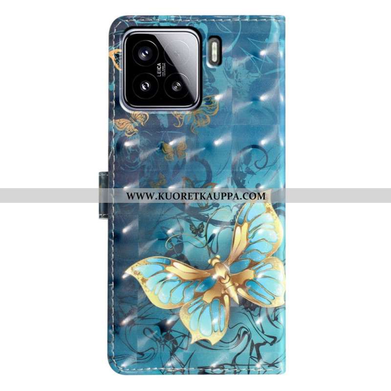 Nahkakotelo Xiaomi 15 3d-perhosia