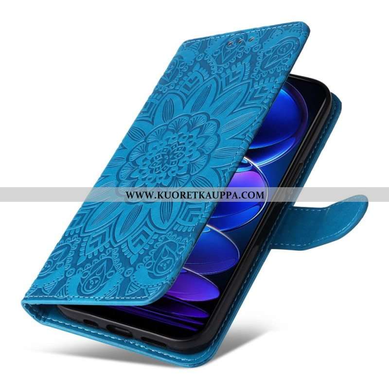 Nahkakotelo Xiaomi Redmi Note 12 5G Suojaketju Kuori Mandala-koriste Hihnalla
