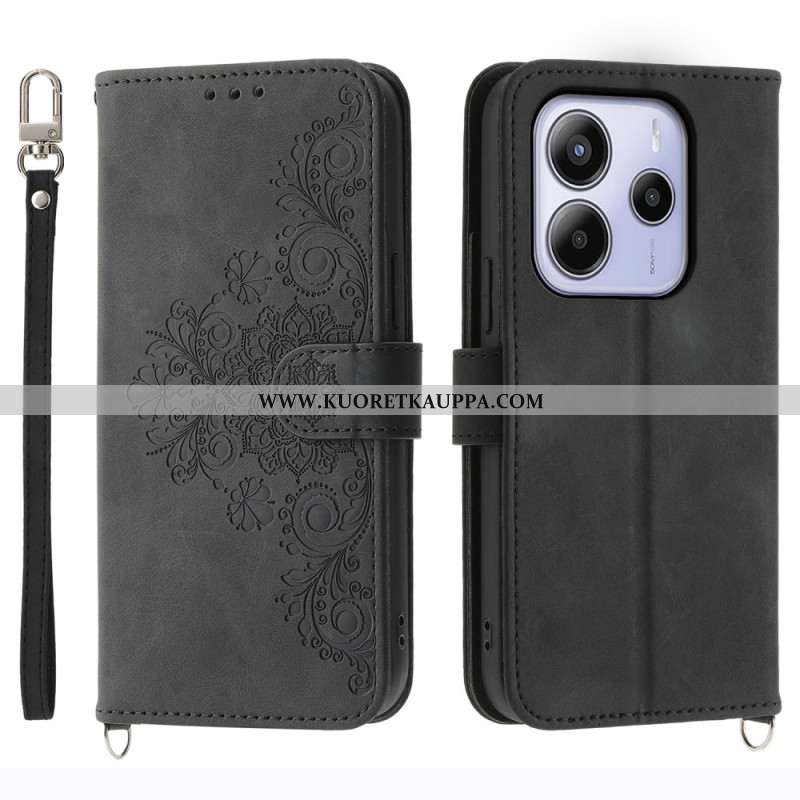 Nahkakotelo Xiaomi Redmi Note 14 4g Kukkakuvio Ja Hihnat