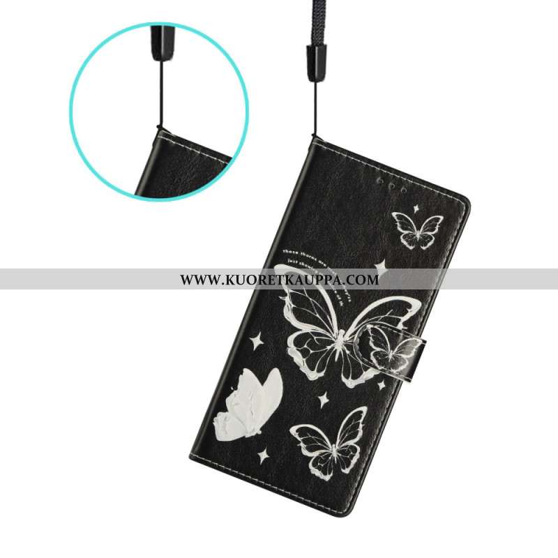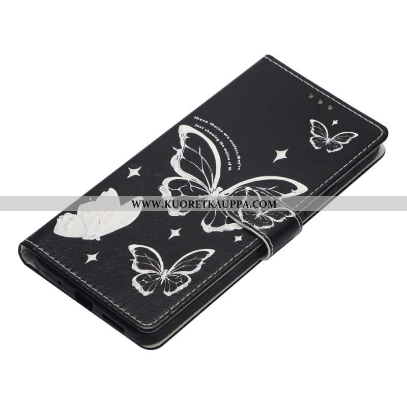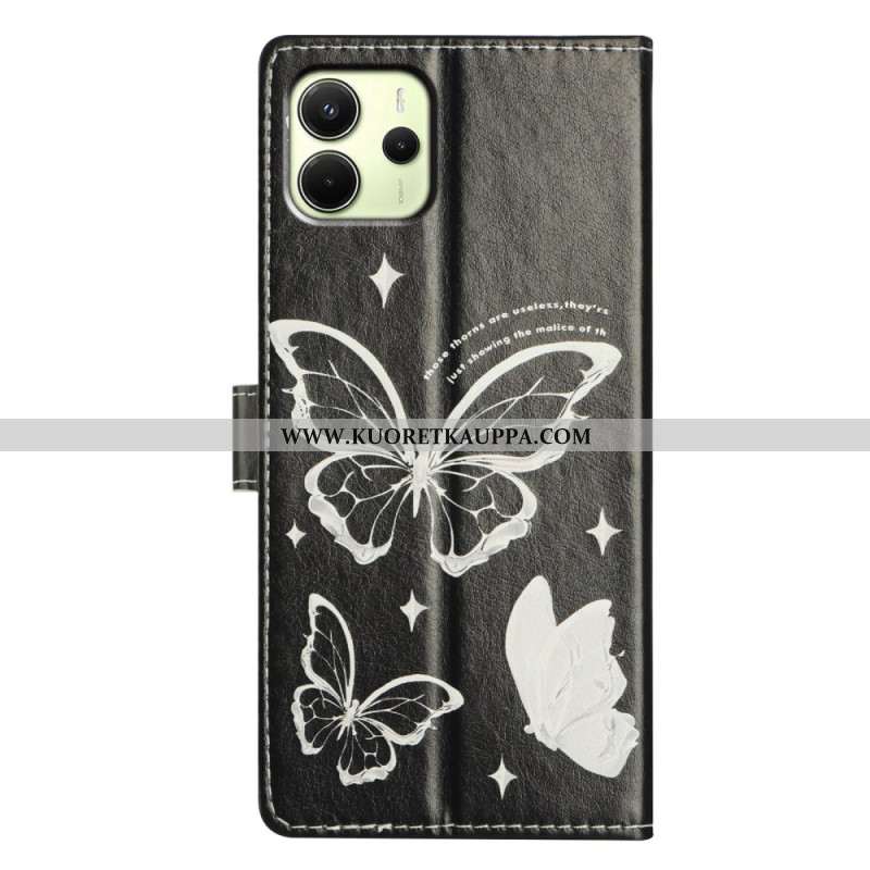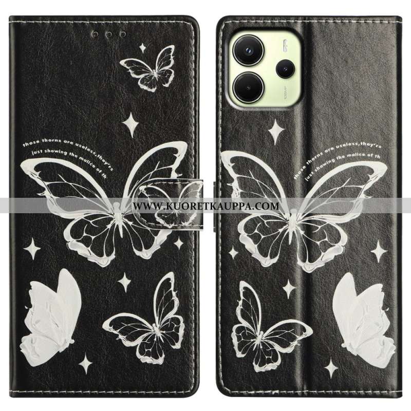 Nahkakotelo Xiaomi Redmi Note 14 4g Mustavalkoisia Perhosia