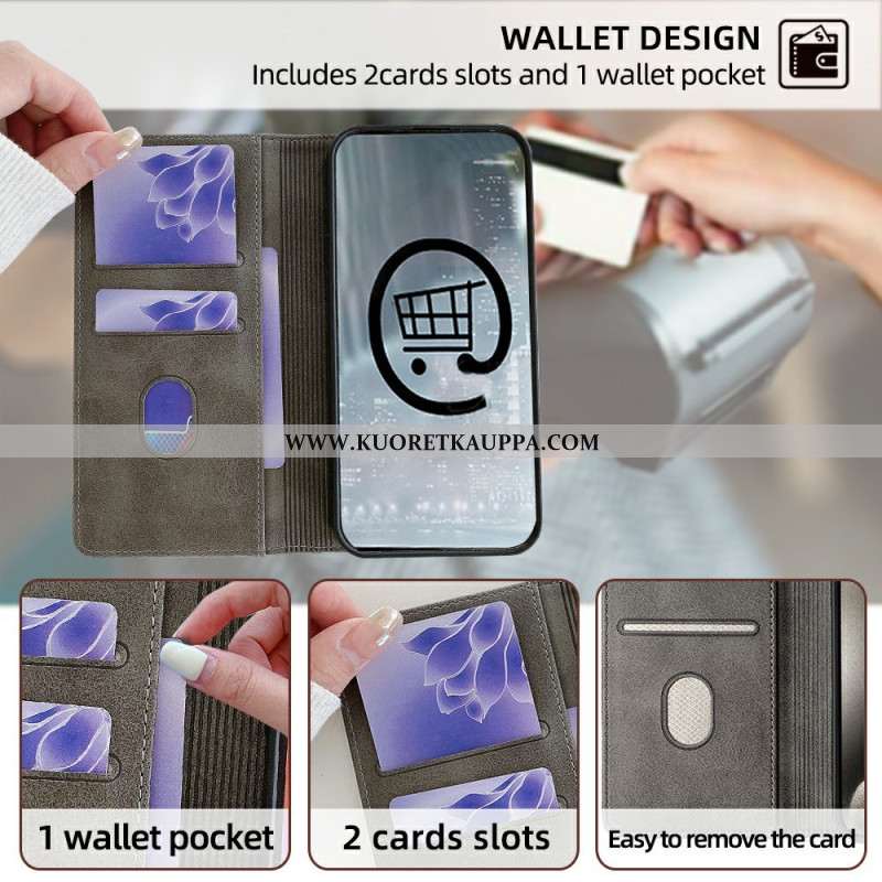 Nahkakotelo Xiaomi Redmi Note 14 5g Rfid-suojauksella Ja Aaltoilevalla Muotoilulla