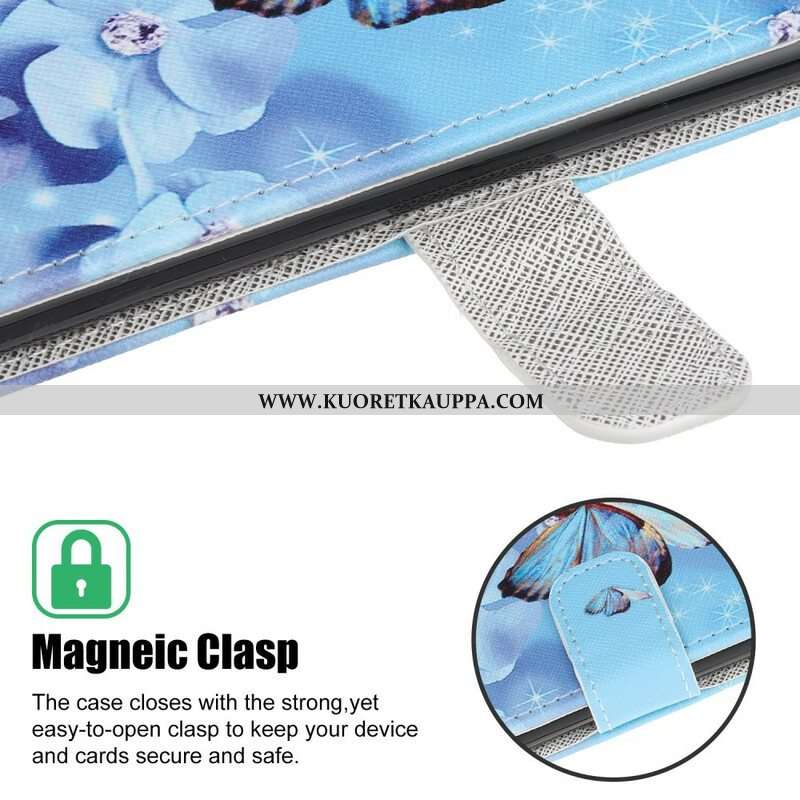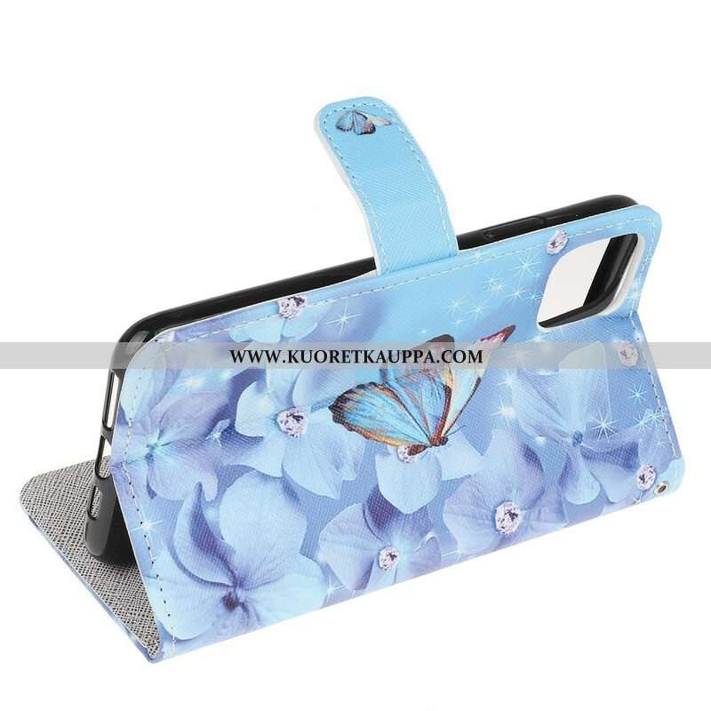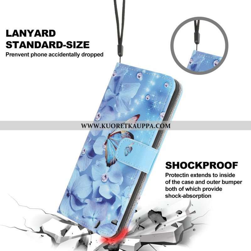 Nahkakotelo iPhone 13 Pro Suojaketju Kuori Strappy Diamond Perhoset