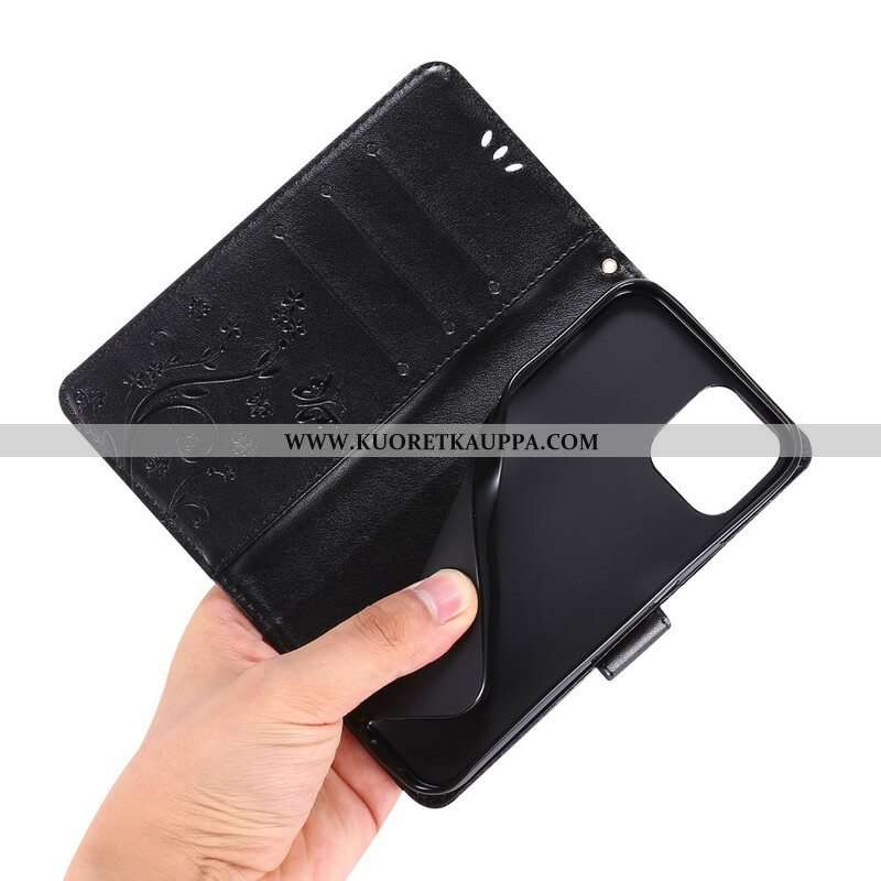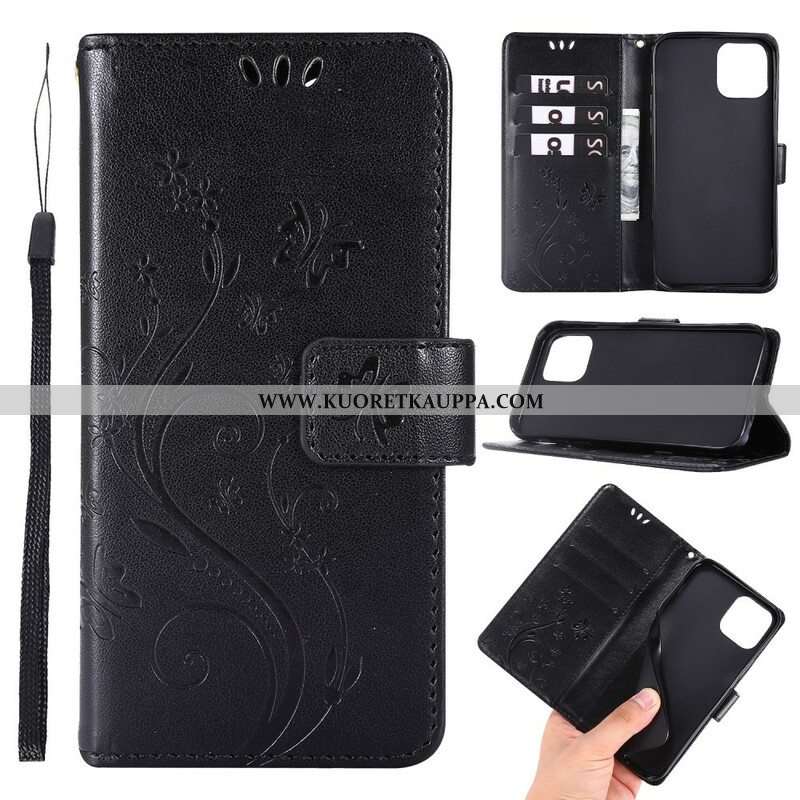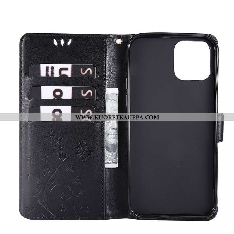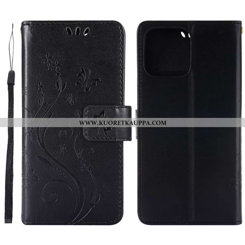 Nahkakotelo iPhone 13 Pro Suojaketju Kuori Strappy Graafiset Kukat
