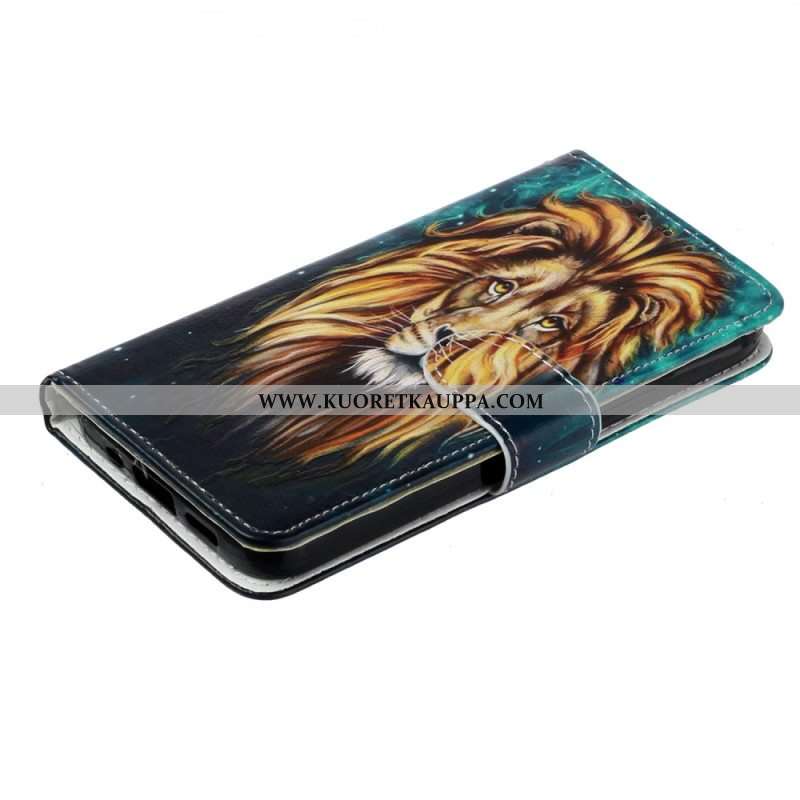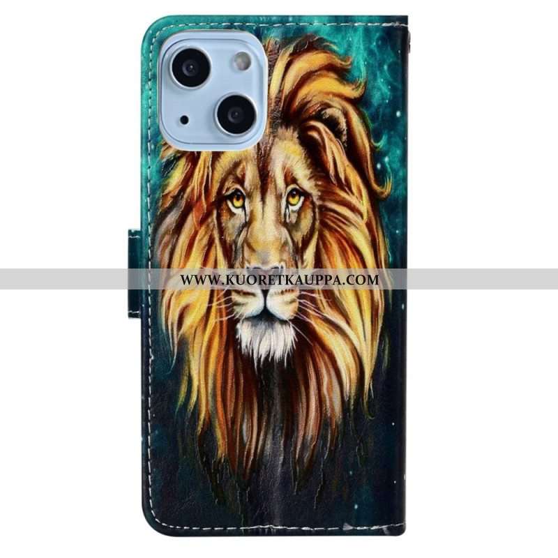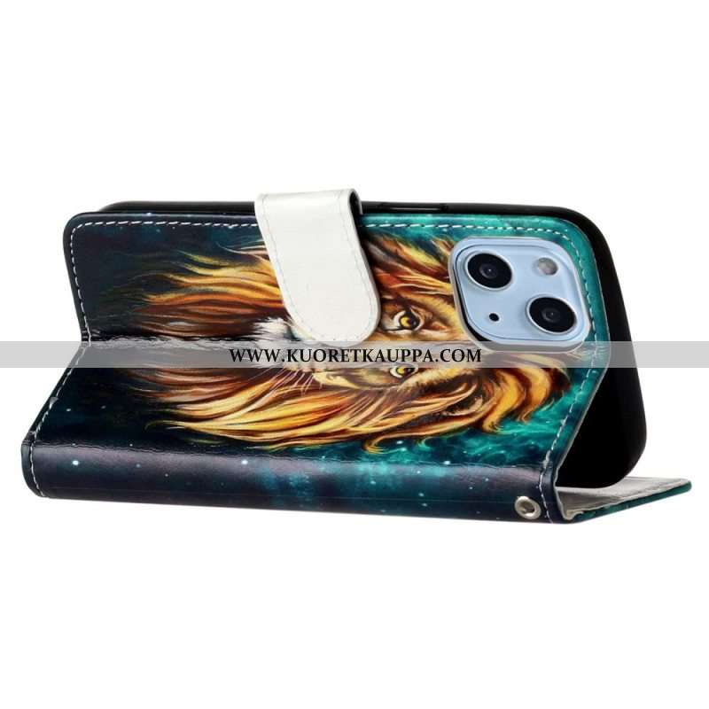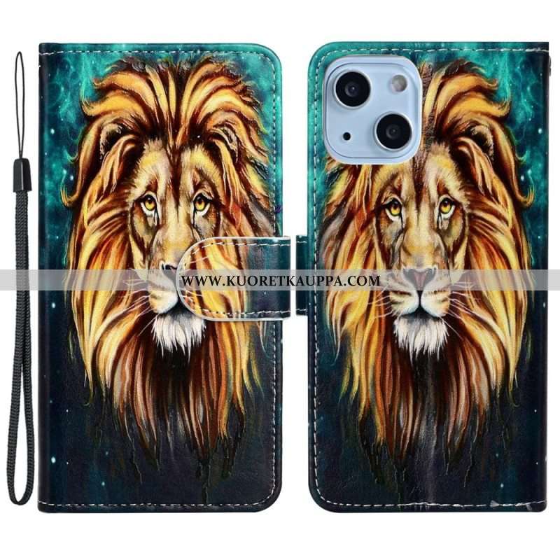 Nahkakotelo iPhone 15 Suojaketju Kuori Lion Graphic Kaulanauha