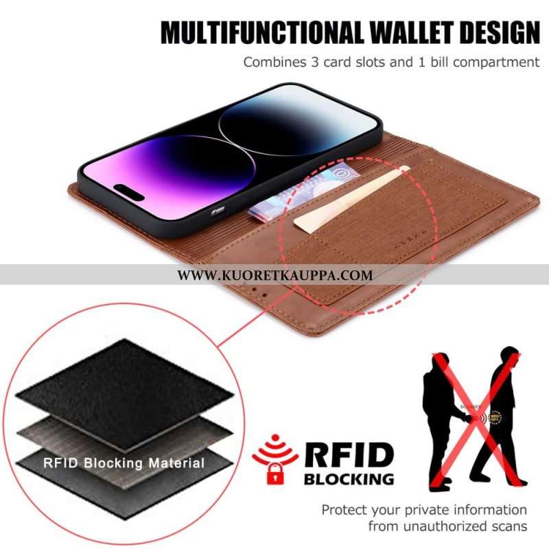 Puhelinkuoret iPhone 14 Pro Kotelot Flip Rfid Canvas -tyyli
